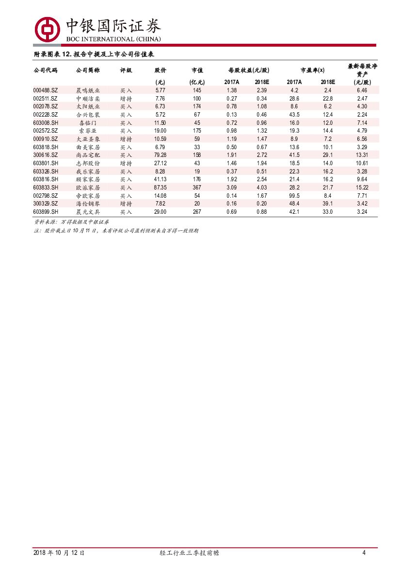 中银国际:轻工行业三季报前瞻:造纸家居龙头稳健,包装盈利有所改善.pdf