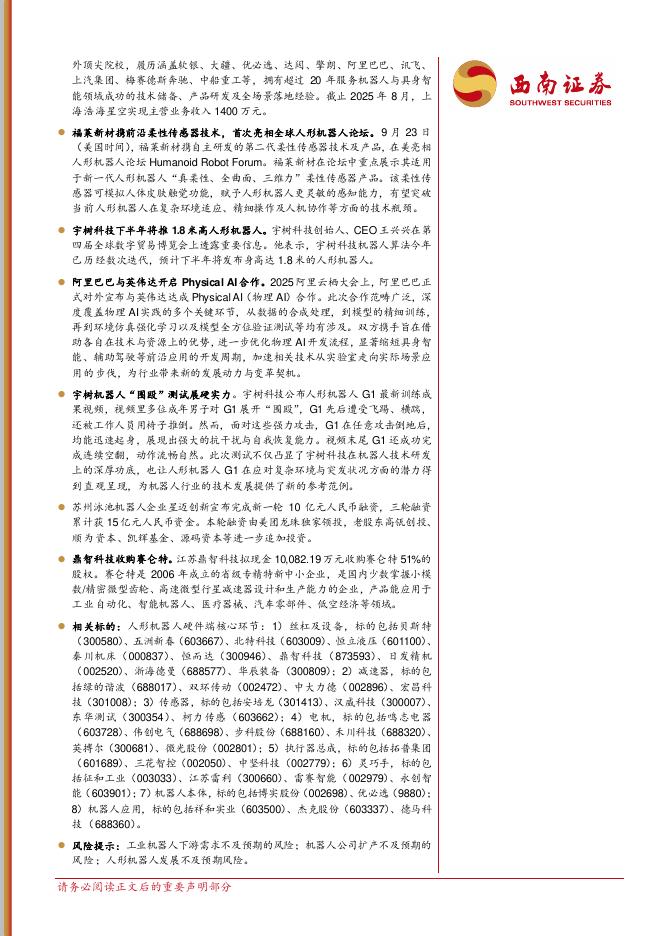 西南证券:机器人行业周报:阿里巴巴与英伟达达成PhysicalAI合作,工博会展示多家人形机器人.pdf