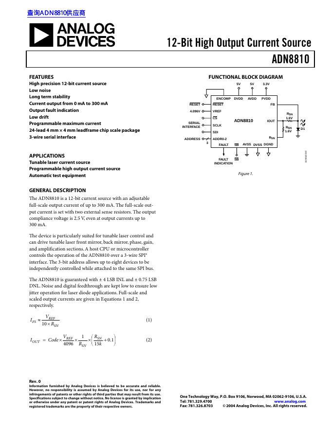 ANALOG DEVICES ADN8810 12-Bit High Output Current Source 数据手册.pdf