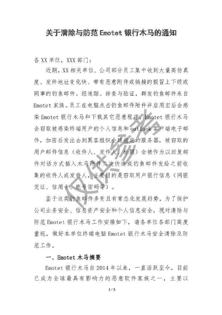 关于清除与防范Emotet银行木马的通知(仅供参考).pdf