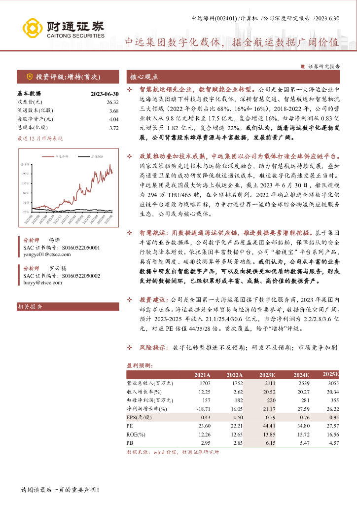 财通证券:中远海科(002401)-中远集团数字化载体,掘金航运数据广阔价值.pdf