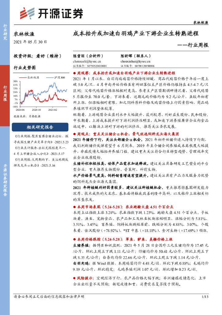 开源证券:农林牧渔行业周报:成本抬升或加速白羽鸡产业下游企业生转熟进程.pdf