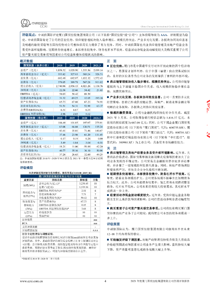 中诚信:厦门国贸控股集团有限公司主体信用评级报告及跟踪评级安排.pdf