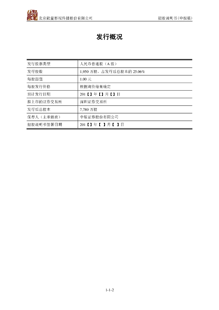 北京能量影视传播股份有限公司深交所创业板IPO上市招股说明书.pdf