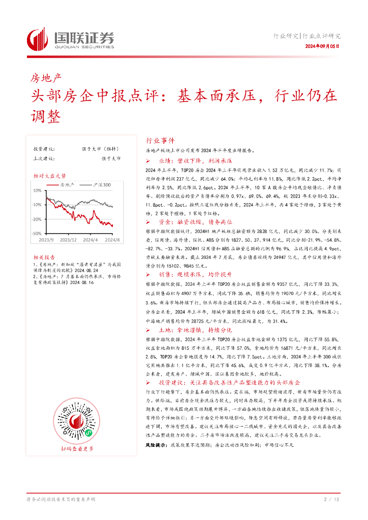 国联证券:房地产行业头部房企中报点评:基本面承压,行业仍在调整.pdf