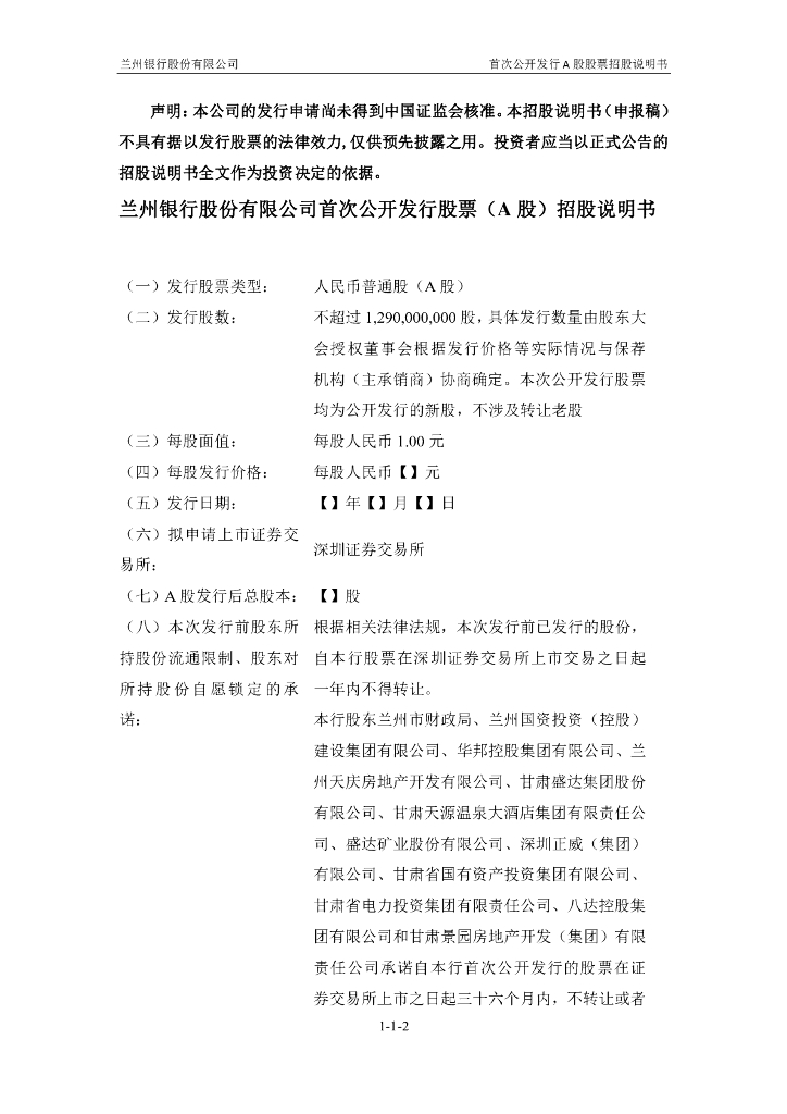 兰州银行股份有限公司深交所主板IPO上市招股说明书.pdf
