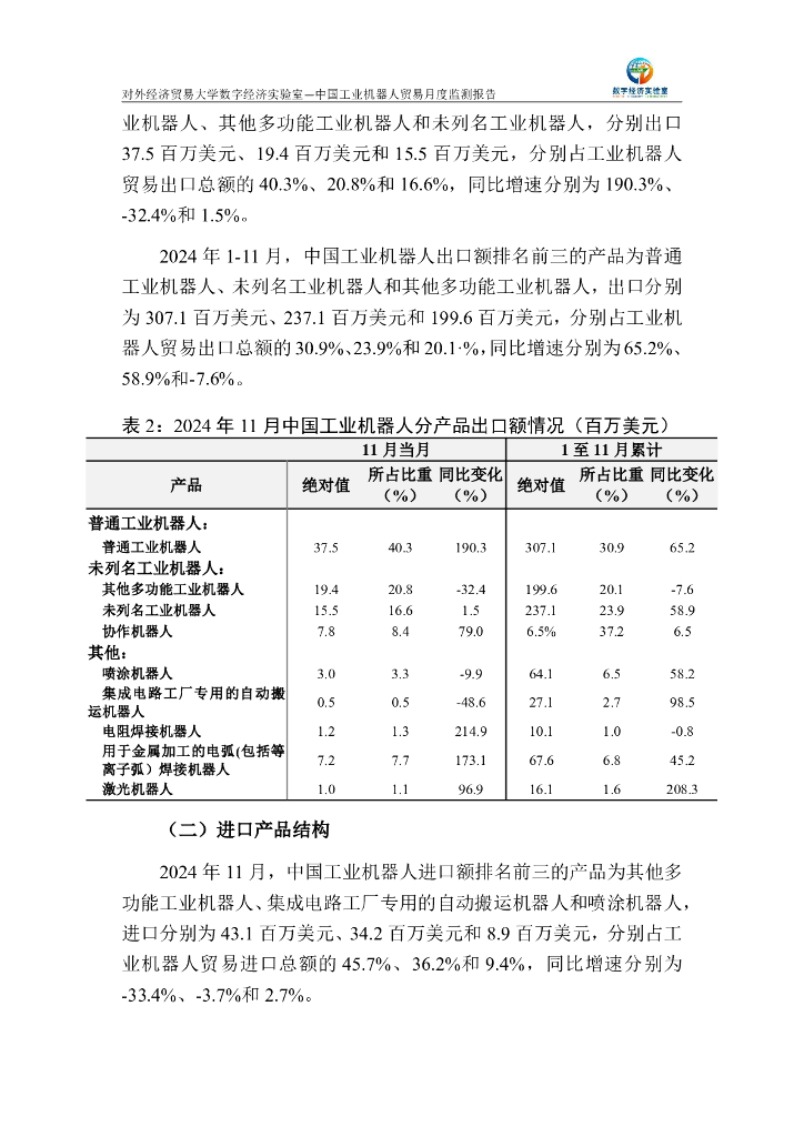 对外经济贸易大学:中国工业机器人贸易月度监测报告(2024年1-11月).pdf