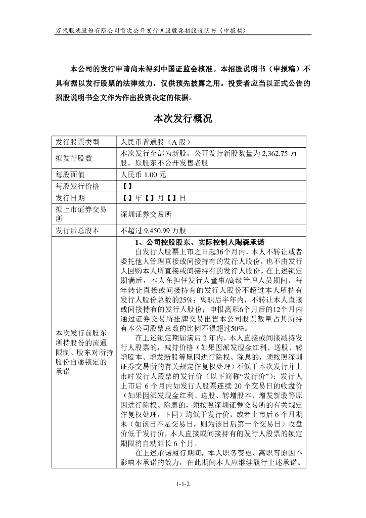 万代服装股份有限公司深交所主板IPO上市招股说明书.pdf