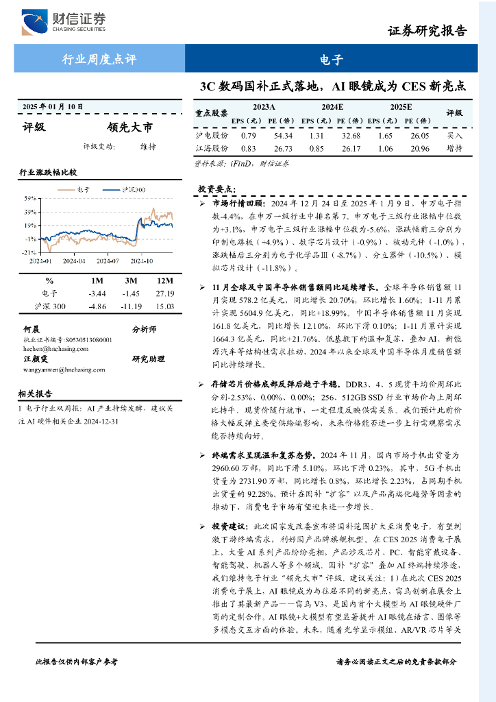 财信证券:电子行业周度点评:3C数码国补正式落地,AI眼镜成为CES新亮点.pdf