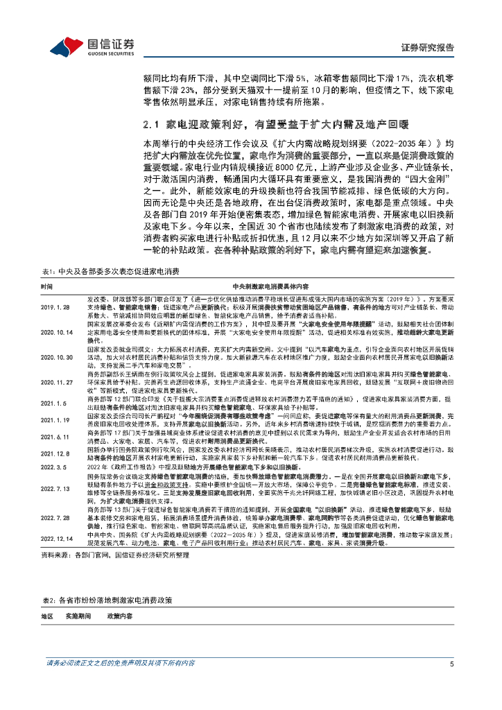 国信证券:家电行业周报(22年第51周):家电内需迎政策利好,11月白电零售表现承压.pdf