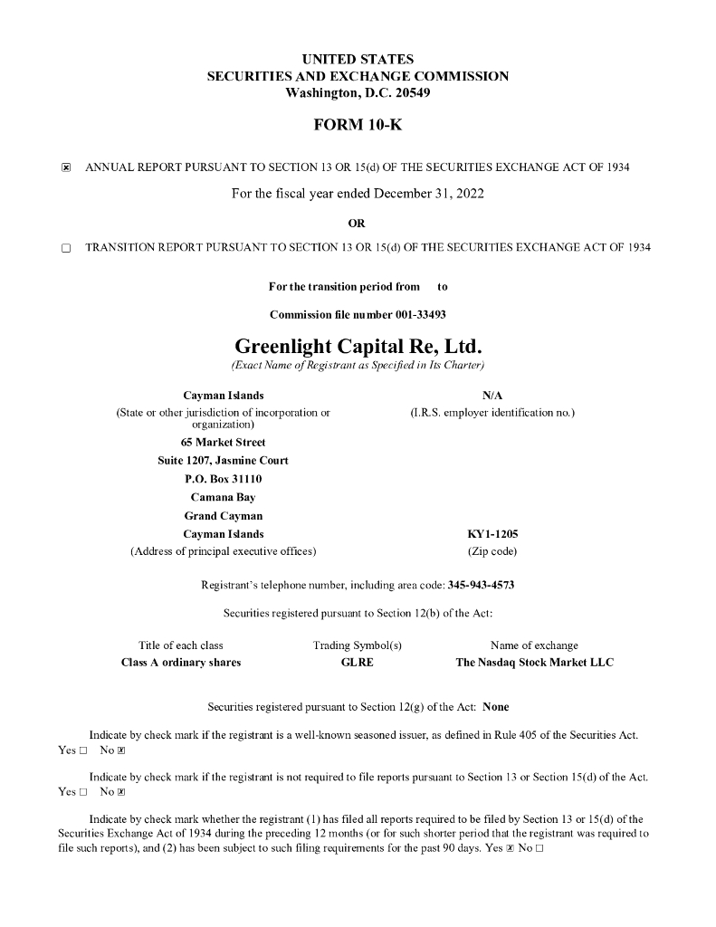 Greenlight Capital Re, Ltd.(GLRE)2022财年年度报告(英文版).pdf