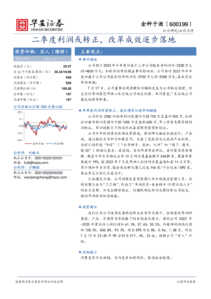 华安证券:金种子酒(600199)-二季度利润或转正,改革成效逐步落地.pdf