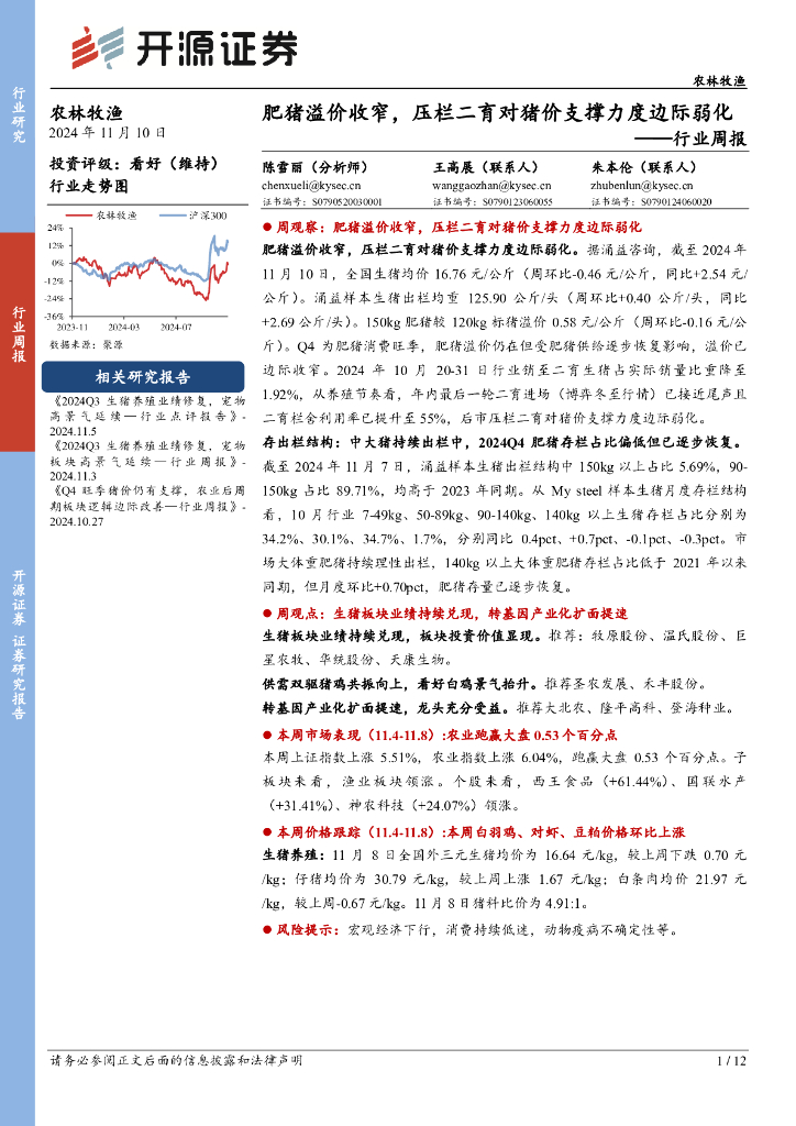 开源证券:农林牧渔行业周报:肥猪溢价收窄,压栏二育对猪价支撑力度边际弱化.pdf