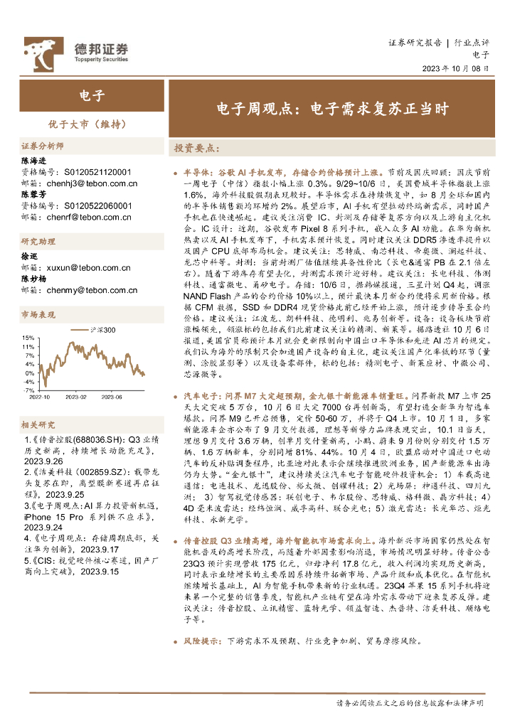 德邦证券:电子周观点:电子需求复苏正当时.pdf