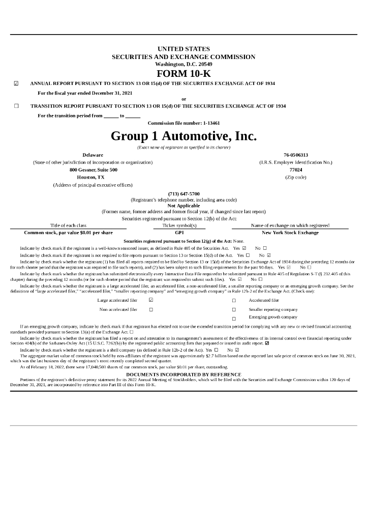 Group 1 Automotive Inc.(GPI)2021财年年度报告(英文版).pdf