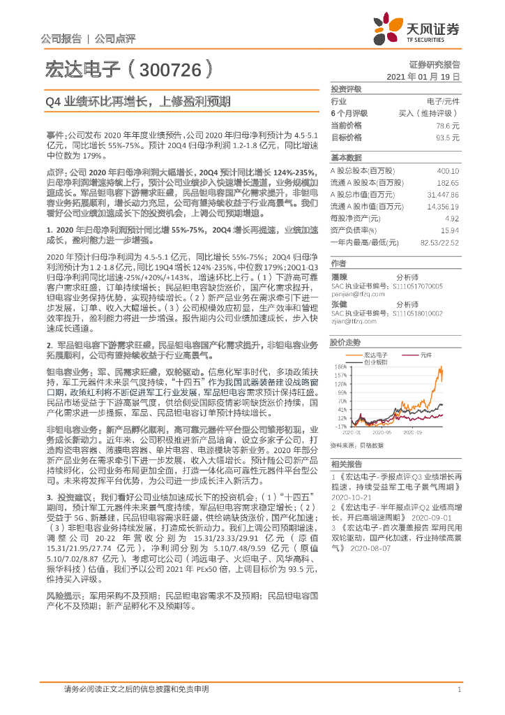 天风证券:宏达电子(300726)-Q4业绩环比再增长,上修盈利预期.pdf