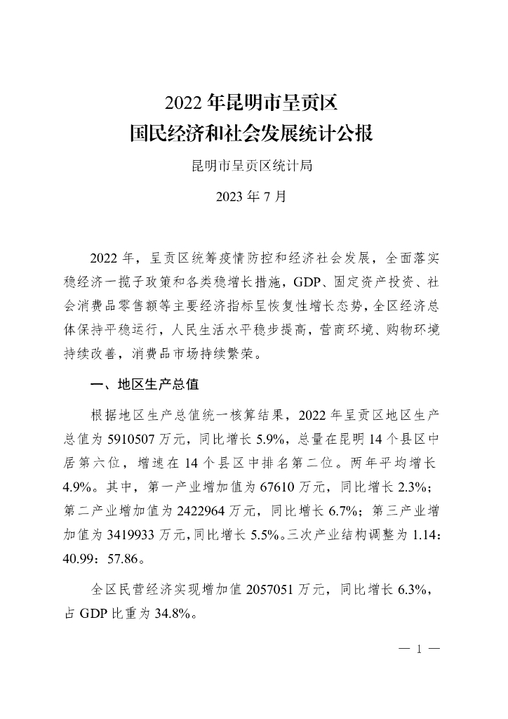 2022年昆明市呈贡区国民经济和社会发展统计公报.pdf