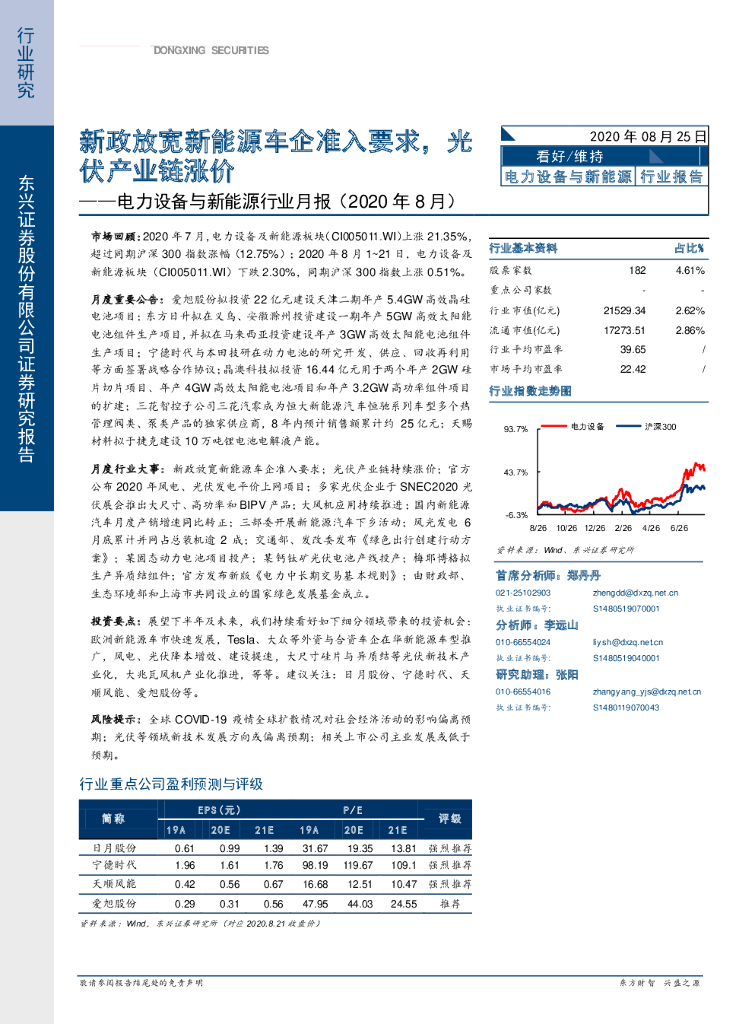 东兴证券:电力设备与新能源行业月报(2020年8月):新政放宽新能源车企准入要求,光伏产业链涨价.pdf
