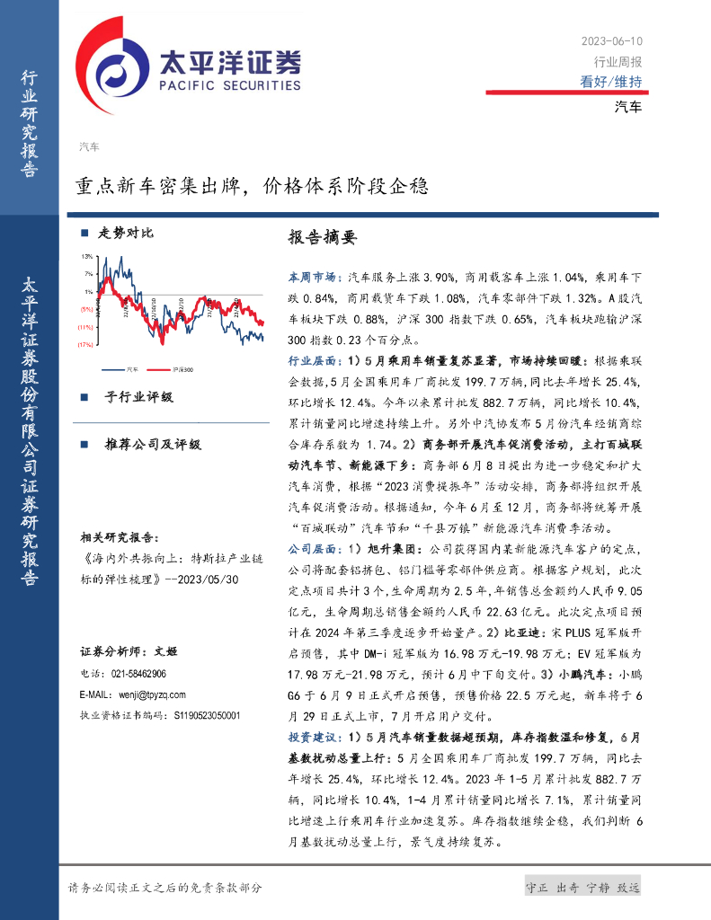 太平洋证券:汽车行业周报:重点新车密集出牌,价格体系阶段企稳.pdf