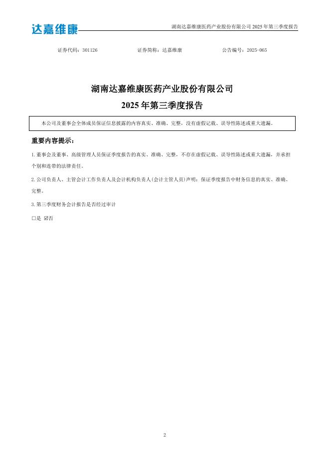 301126-达嘉维康:2025年三季度报告.pdf