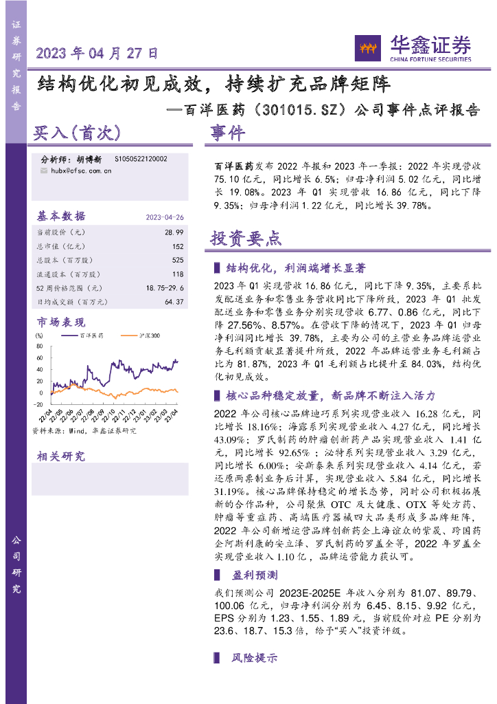 华鑫证券:百洋医药(301015)-公司事件点评报告:结构优化初见成效,持续扩充品牌矩阵.pdf
