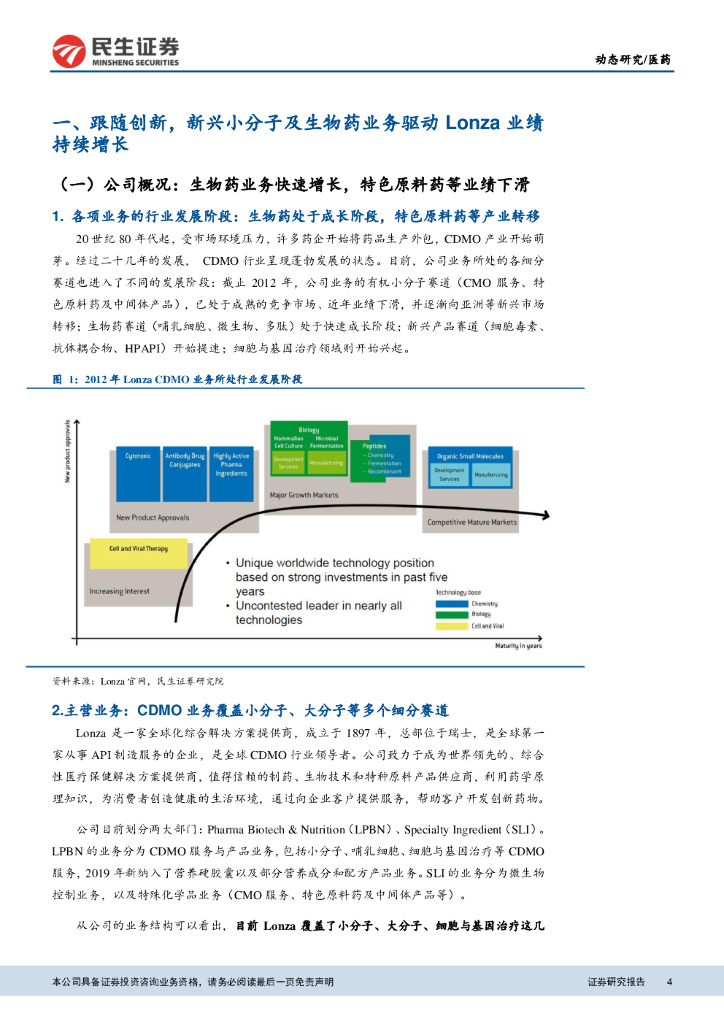 民生证券:医药海外CXO公司年报梳理:跟随创新,新兴小分子及生物药业务驱动Lonza业绩持续增长.pdf