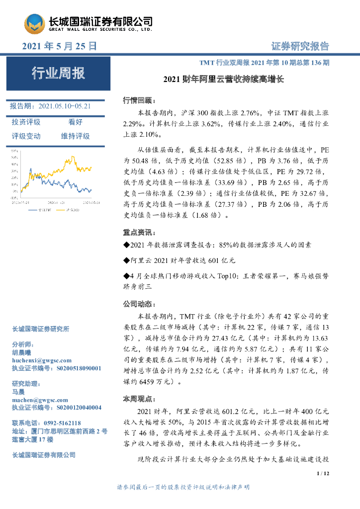 长城国瑞证券:TMT行业双周报2021年第10期总第136期:2021财年阿里云营收持续高增长.pdf