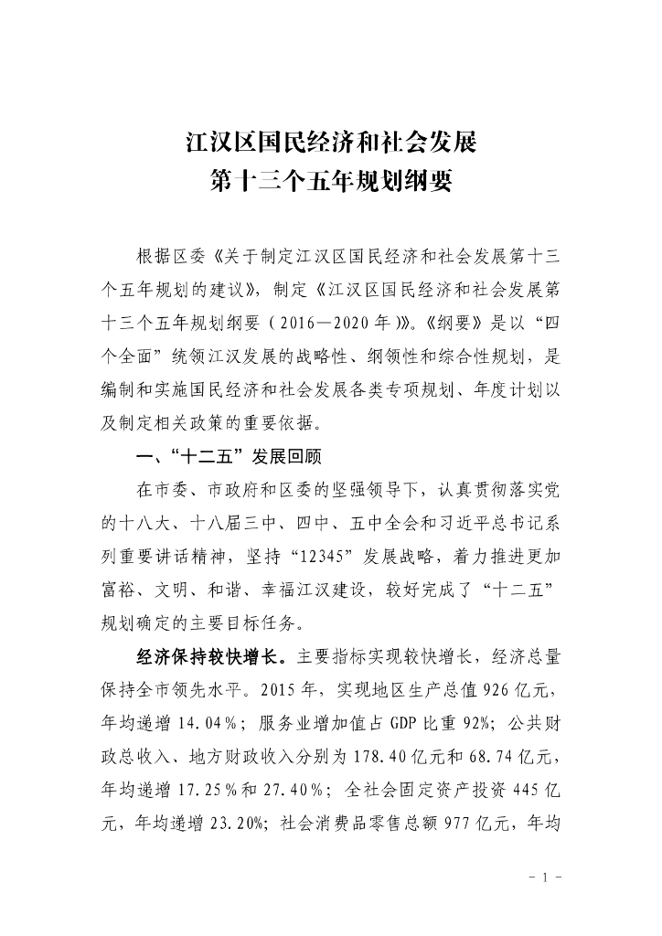江汉区国民经济和社会发展第十三个五年规划纲要.pdf