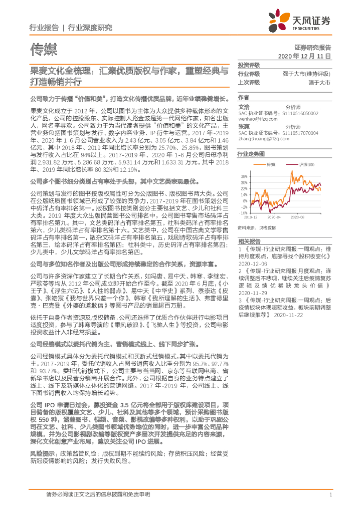 天风证券:传媒行业:果麦文化全梳理:汇集优质版权与作家,重塑经典与打造畅销并行.pdf