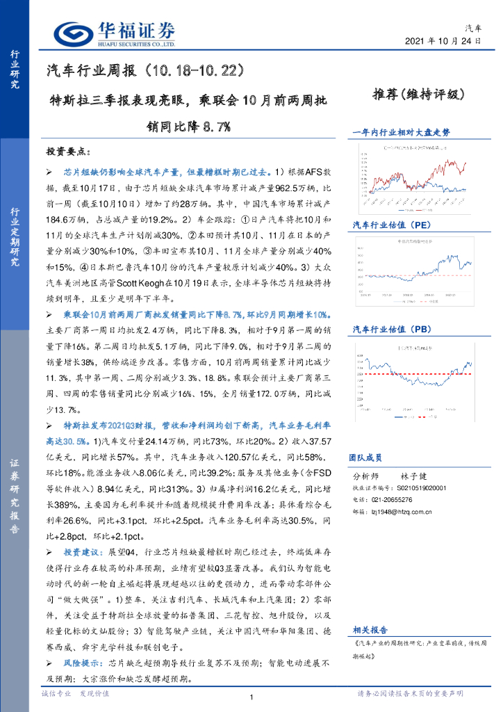 华福证券:汽车行业周报:特斯拉三季报表现亮眼,乘联会10月前两周批销同比降8.7%.pdf