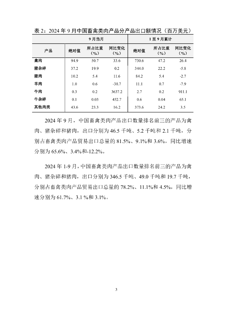 对外经济贸易大学:中国畜禽类肉产品贸易月度监测报告(2024年1-9月).pdf