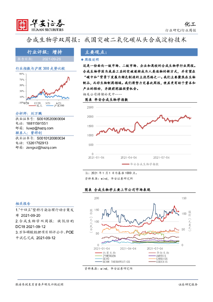 华安证券:化工行业合成生物学双周报:我国突破二氧化碳从头合成淀粉技术.pdf