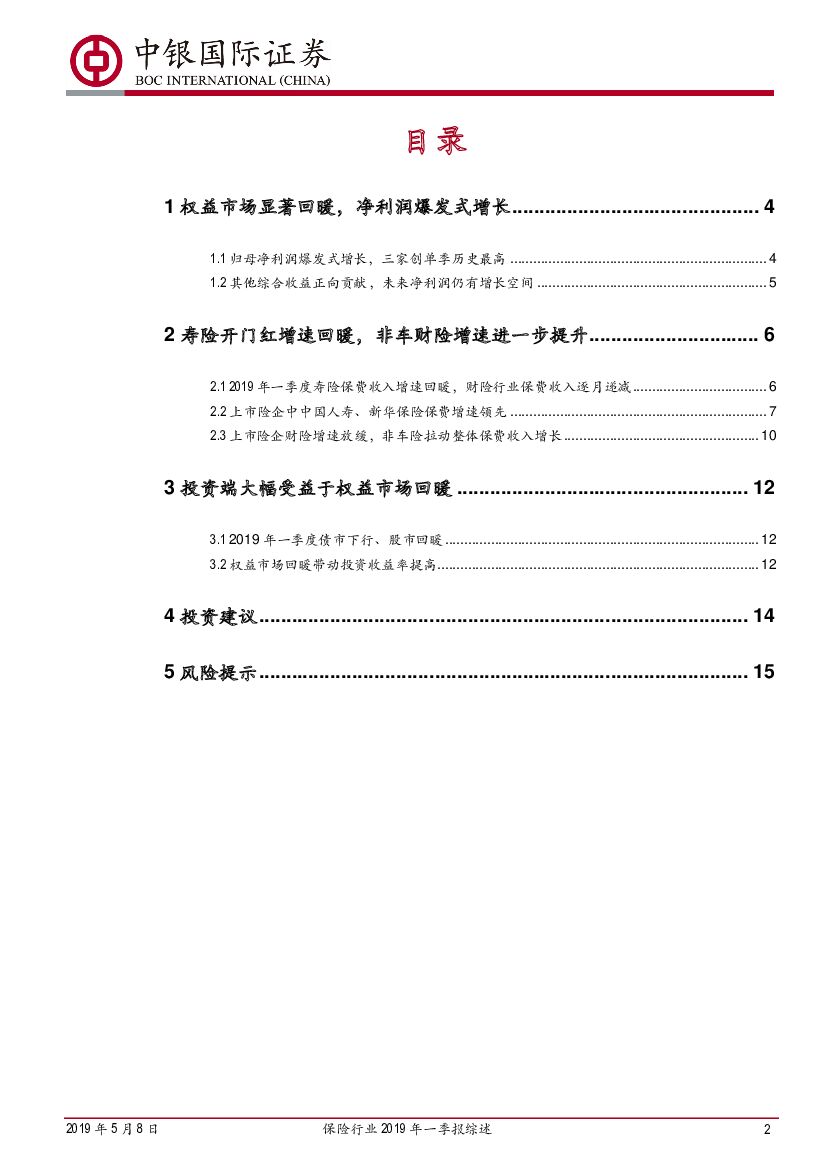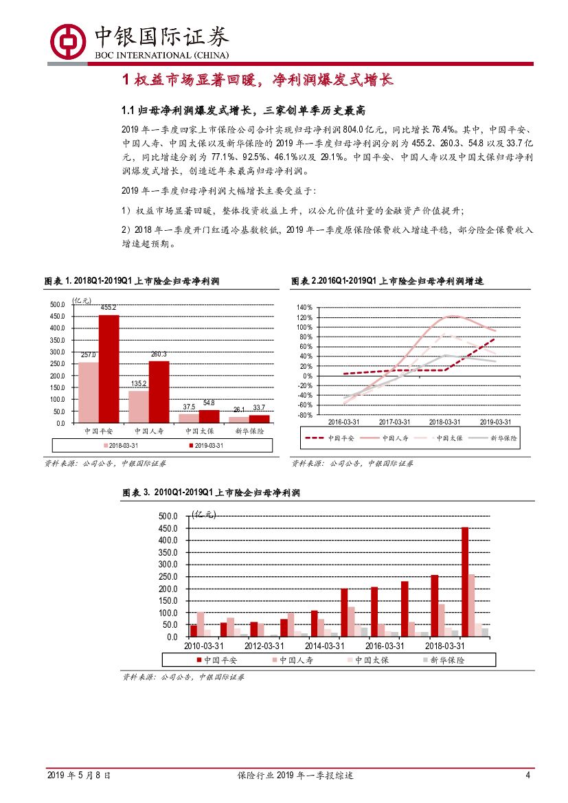 中银国际:保险行业2019年一季报综述:资产负债双向改善,推险企净利润创单季新高.pdf