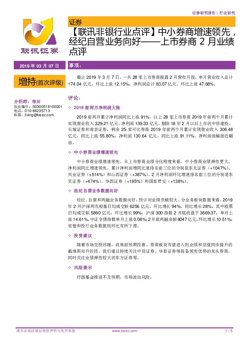 联讯证券:【联讯非银行业点评】中小券商增速领先,经纪自营业务向好——上市券商2月业绩点评.pdf