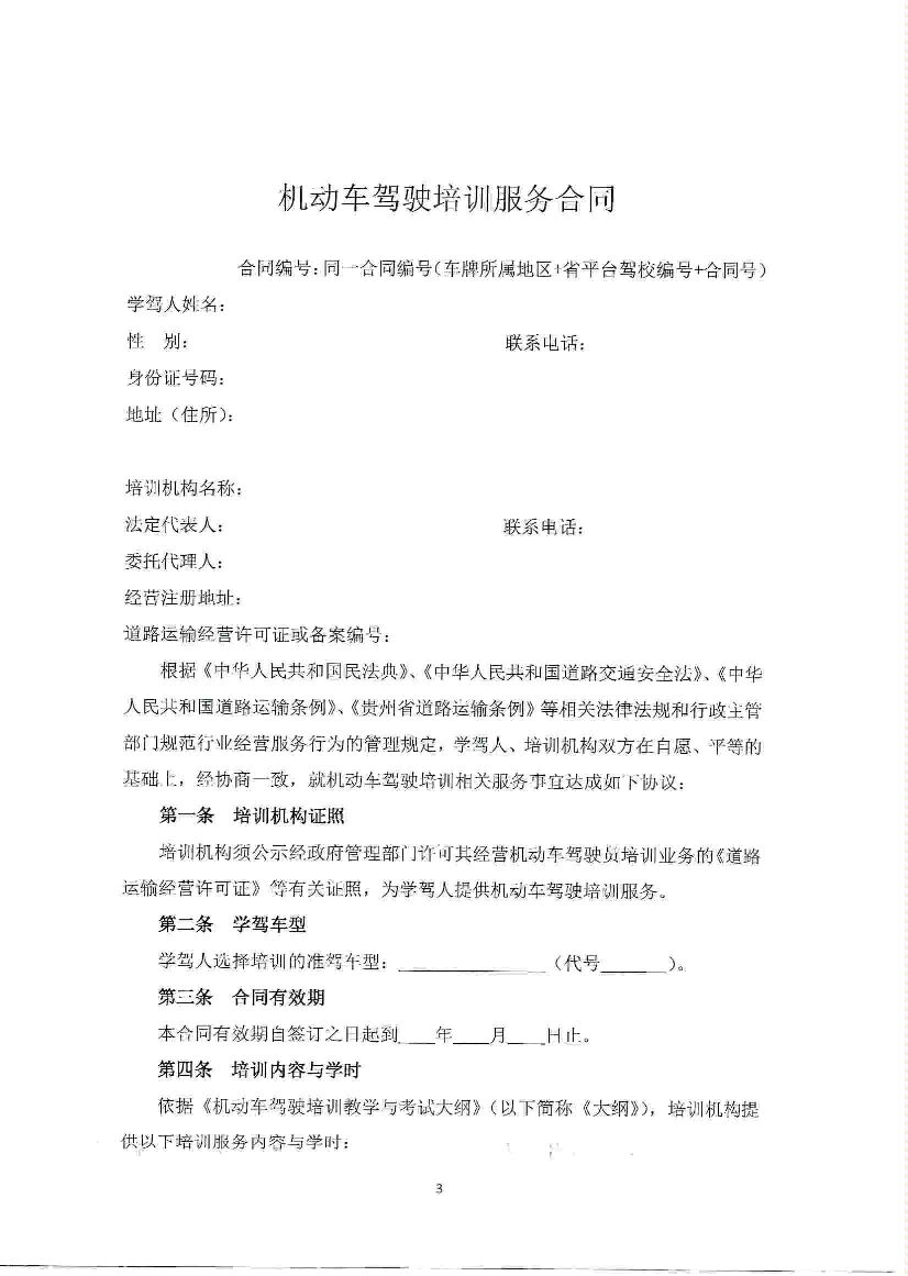 贵州省机动车驾驶培训服务合同(示范文本).pdf