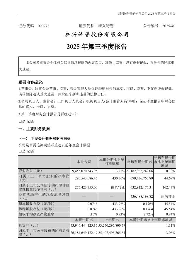 000778-新兴铸管:2025年三季度报告.pdf
