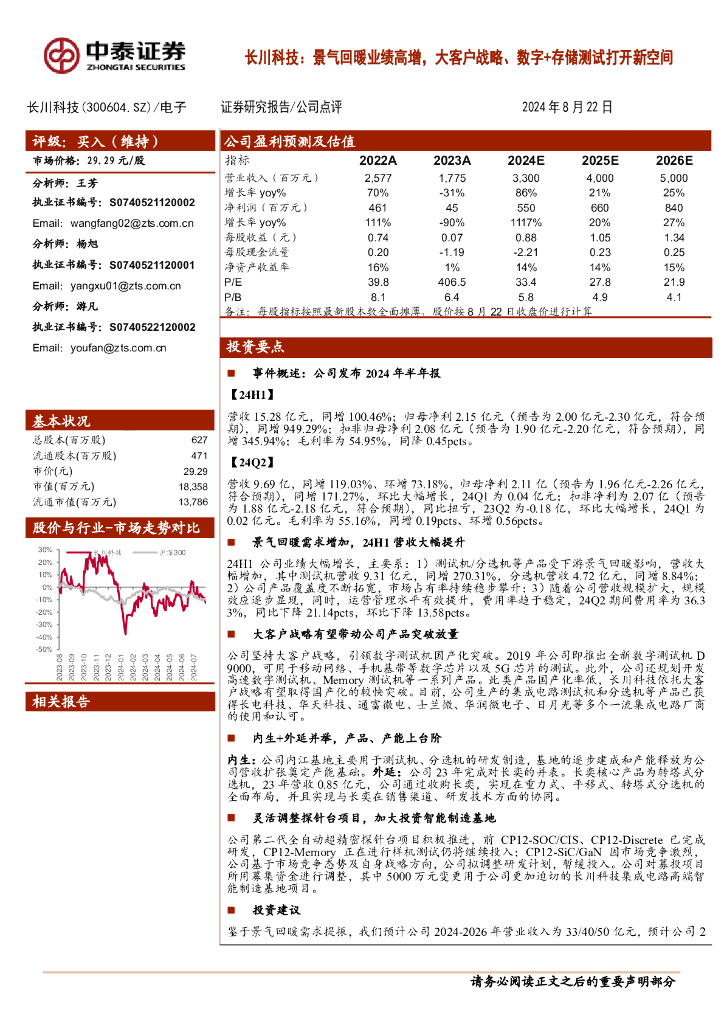 中泰证券:长川科技:景气回暖业绩高增,大客户战略、数字+存储测试打开新空间.pdf