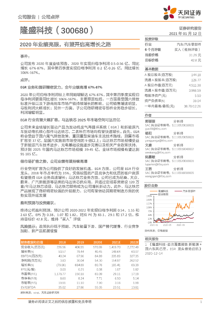 天风证券:隆盛科技(300680)-2020年业绩亮眼,有望开启高增长之路.pdf