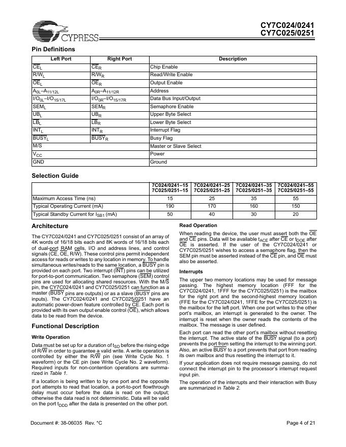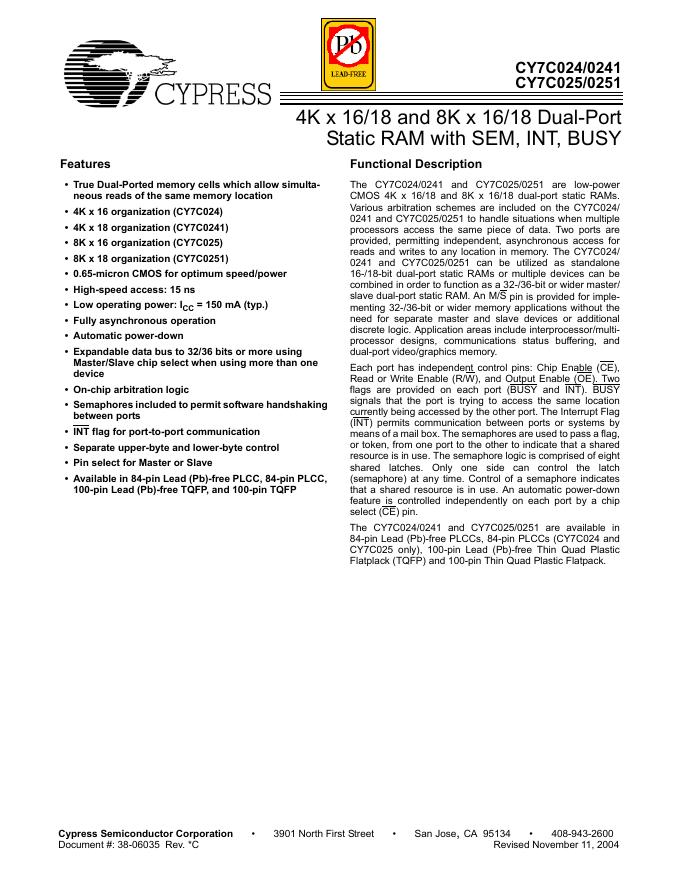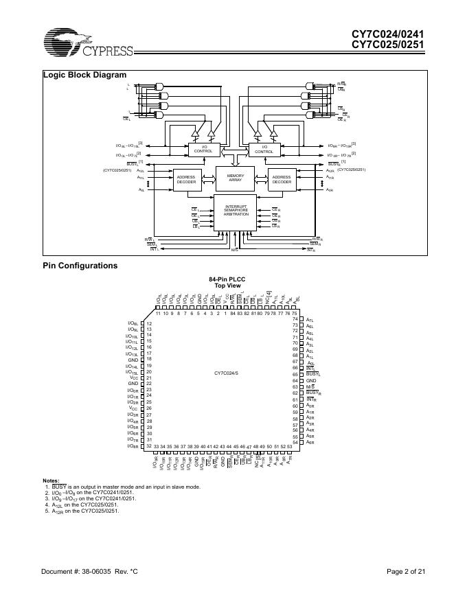 CYPRESS CY7C024/0241, CY7C025/0251 数据手册.pdf