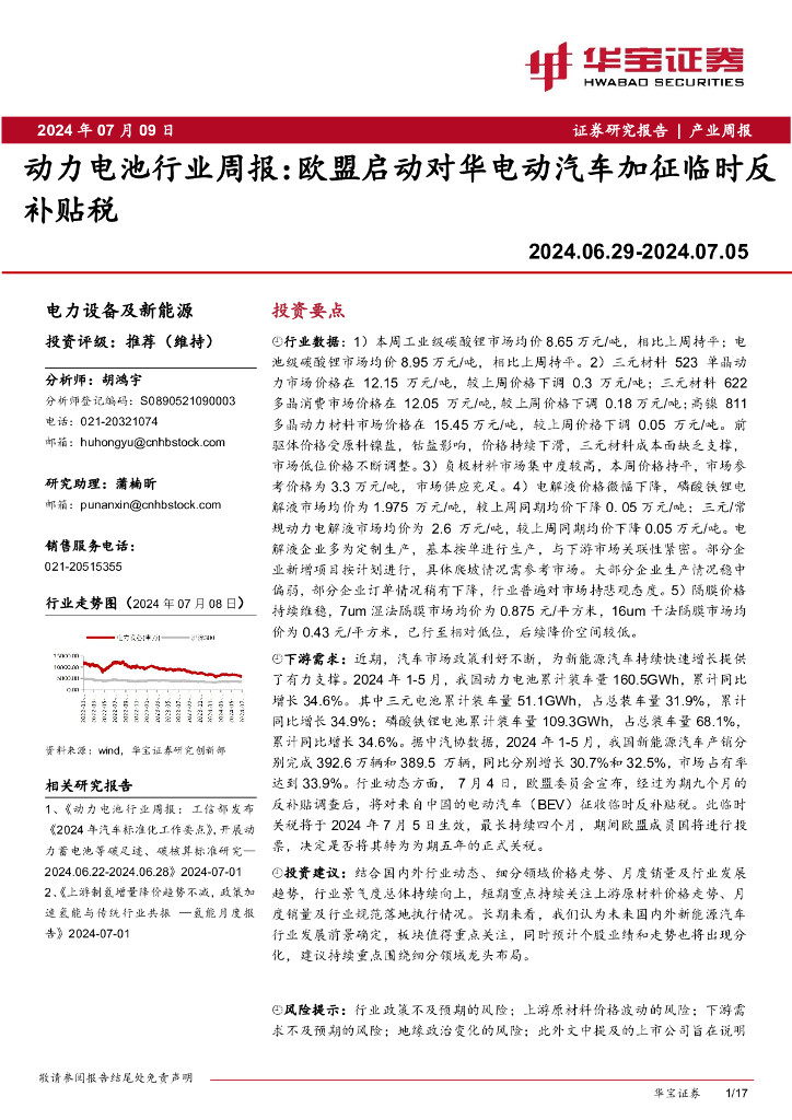 华宝证券:动力电池行业周报:欧盟启动对华电动汽车加征临时反补贴税.pdf