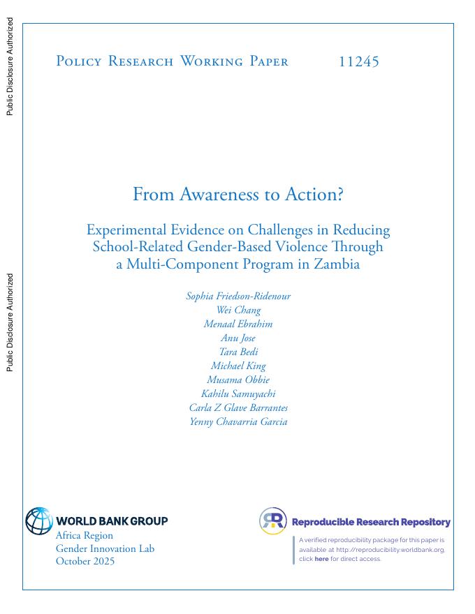 世界银行:从意识到行动?赞比亚通过多组成部分方案减少与学校有关的性别暴力挑战的实验证据(英文版).pdf