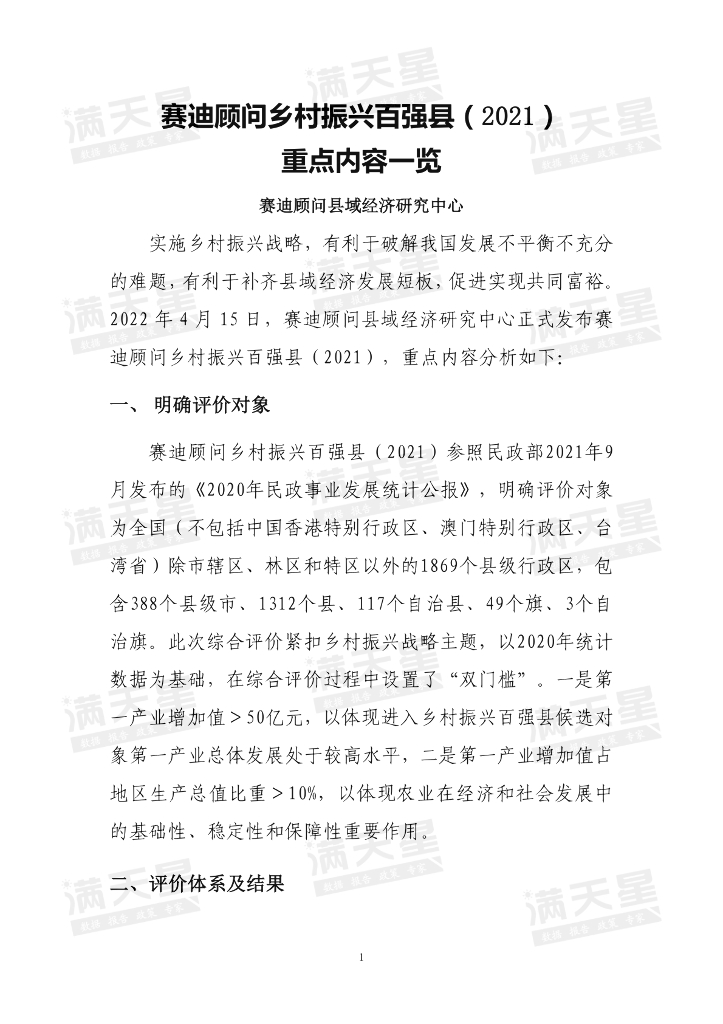 赛迪智库:乡村振兴百强县(2021) 重点内容一览.pdf