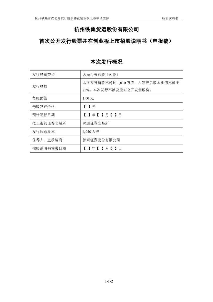 杭州铁集货运股份有限公司深交所创业板IPO上市招股说明书.pdf