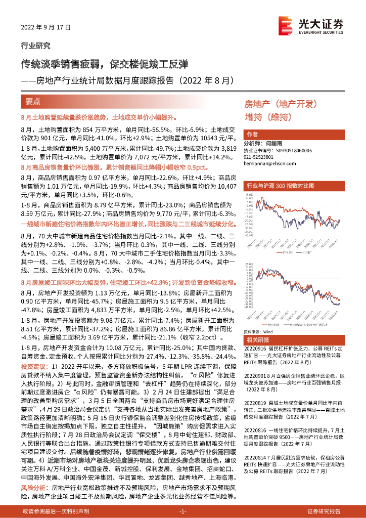 光大证券:房地产行业统计局数据月度跟踪报告(2022年8月):传统淡季销售疲弱,保交楼促竣工反弹.pdf