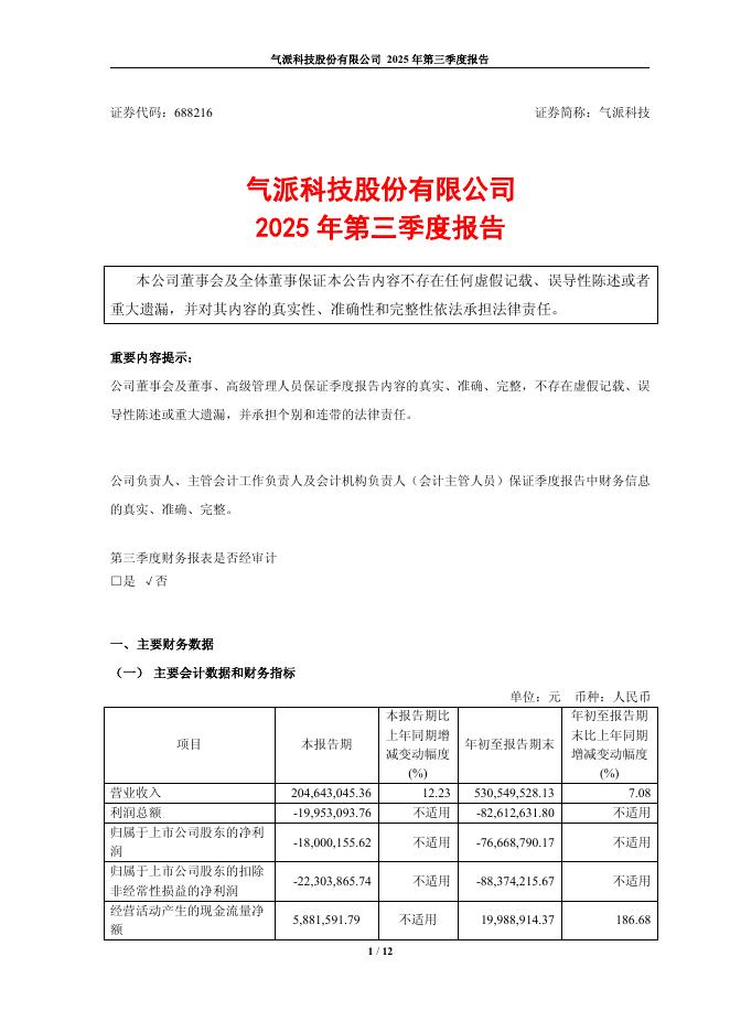 688216-气派科技:气派科技股份有限公司2025年第三季度报告.pdf