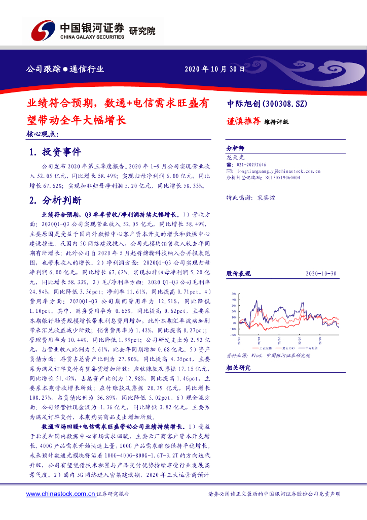 中国银河:中际旭创(300308)-业绩符合预期,数通+电信需求旺盛有望带动全年大幅增长.pdf