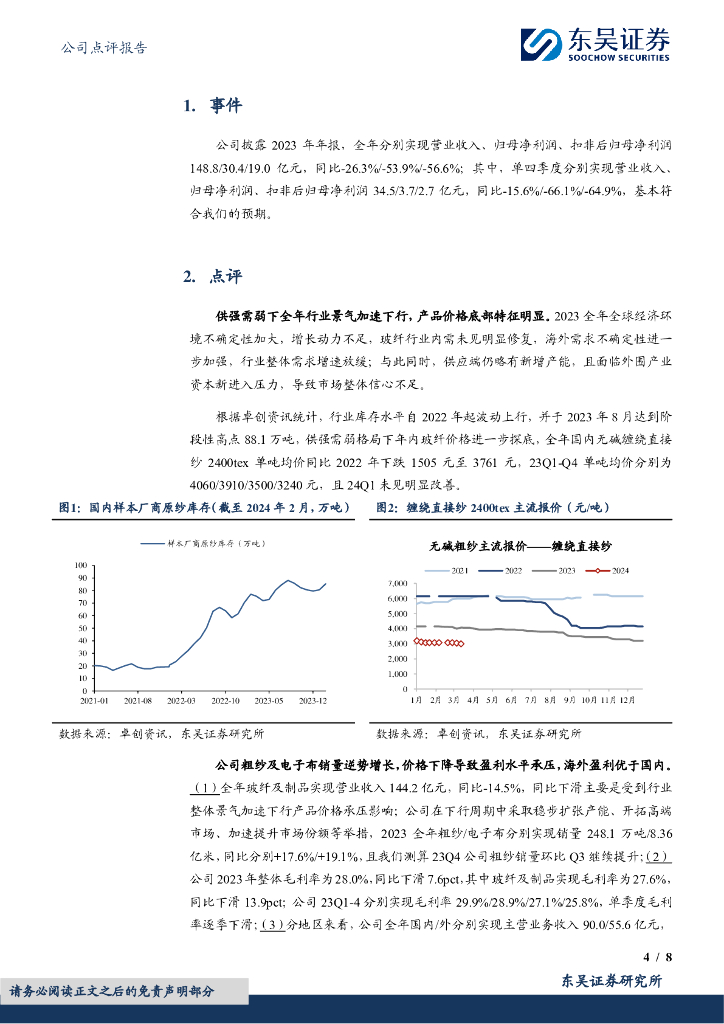 东吴证券:中国巨石(600176)-2023年年报点评:行业底部明确,盈利改善可期.pdf