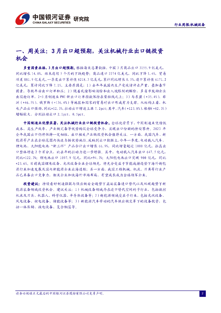 中国银河:机械设备行业周报:3月出口超预期,关注机械行业出口链投资机会.pdf