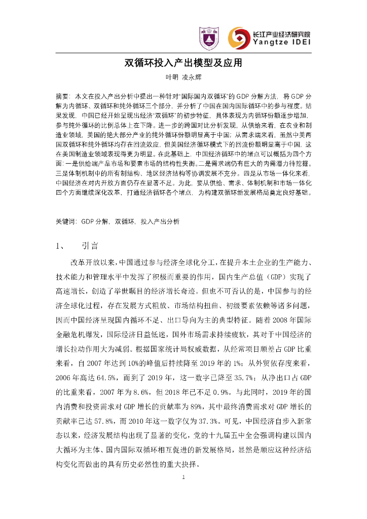 长江产业经济研究院:2020年双循环投入产出模型及应用报告.pdf