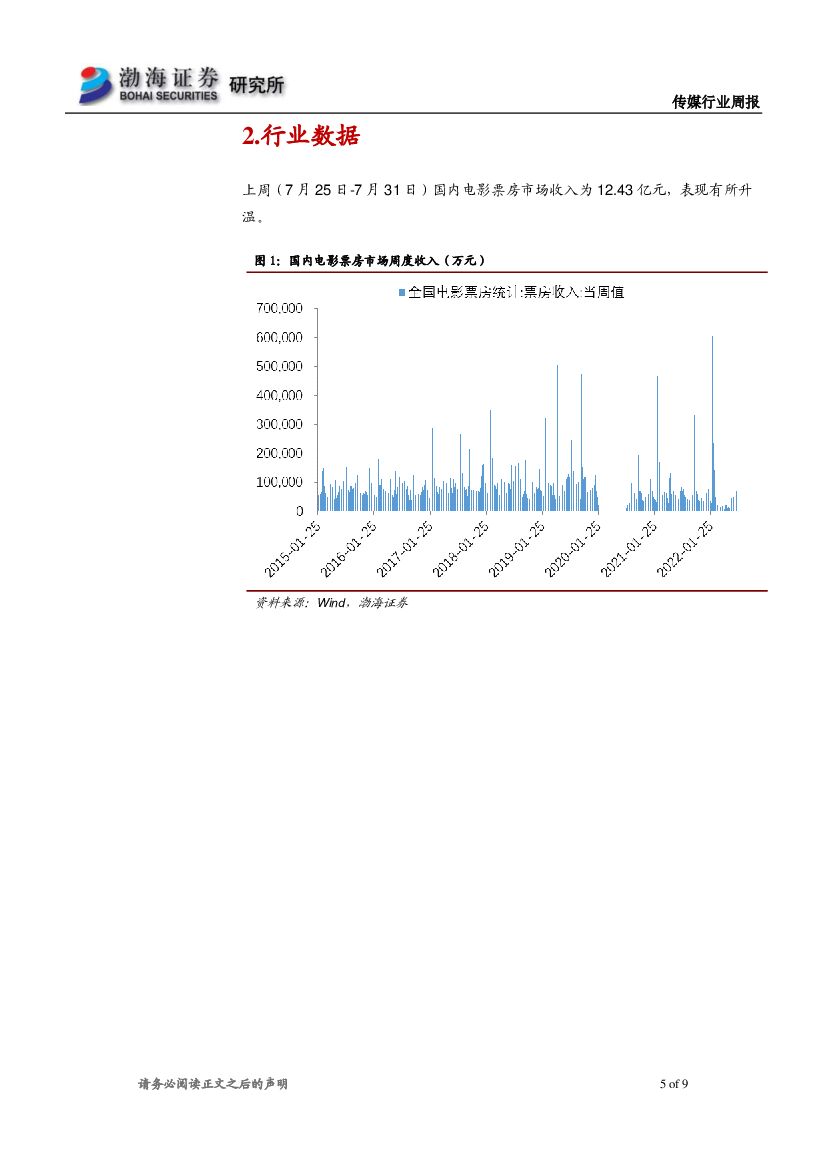 渤海证券:文化传媒行业周报:行情表现中性,暑期档票房升温.pdf